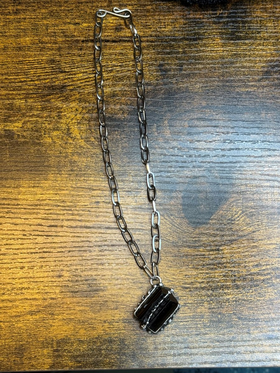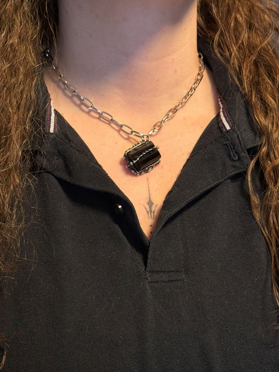 Náhrdelník ze surového TURMALÍNU na řetízku z chirurgické oceli.