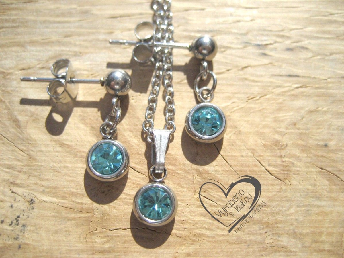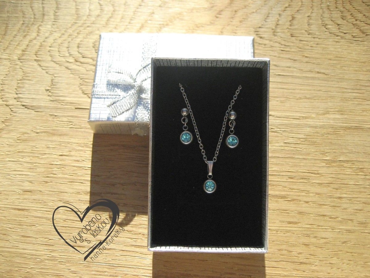 Jemná, jednoduchá a přitom elegantní sada řetízku a náušnic z nerez oceli s bílým skleněným korálkem, délka řetízku 45 cm, průměr přívěsku 5 mm