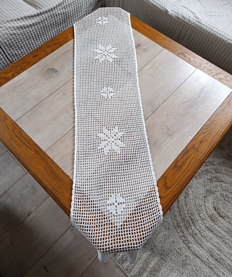 Háčkovaný běhoun, nebo chcete-li středový ubrus. Krásně oživí váš stůl a navíc budete originální.