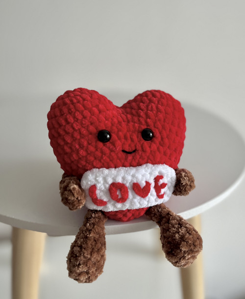Háčkované valentýnské srdce s nápisem LOVE je roztomilý ručně vyráběný dárek, který potěší na první pohled.Srdíčko má milý výraz, malé ručičky a nožky a působí jako malá postavička plná lásky ❤️.