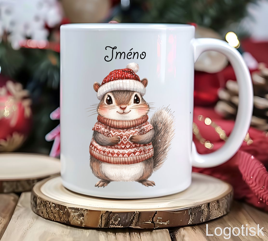Keramický hrníček, cca 300 ml s vánoční veverkou + jméno. Darujte tento originální a milý dárek, který zaručeně potěší každého ;-)
