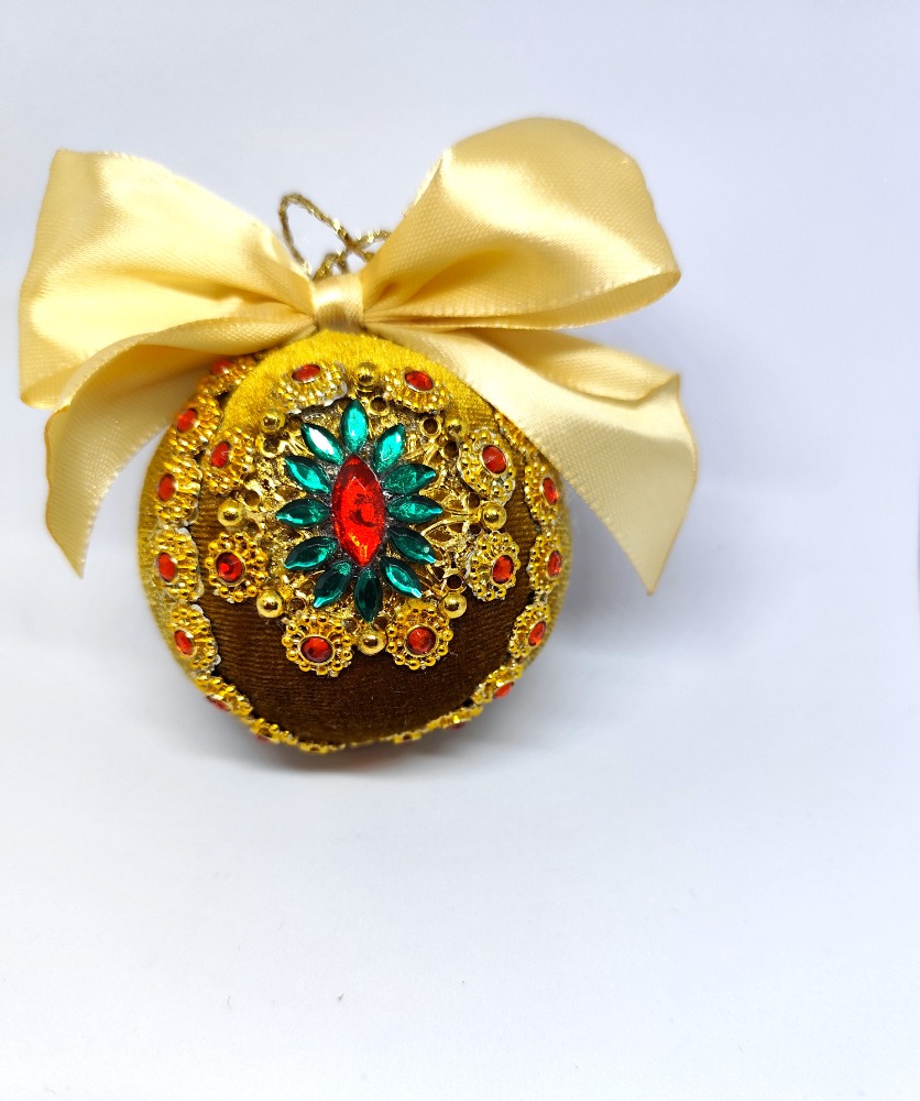 Použitý materiál :zlaté, červené a zelené kamínky ,zlaté brože , mašle
