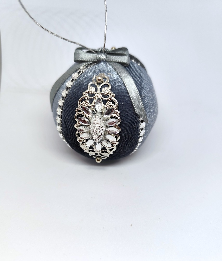Použitý materiál :šedý samet, stříbrné kamínky ,stříbrné brože , mašle .