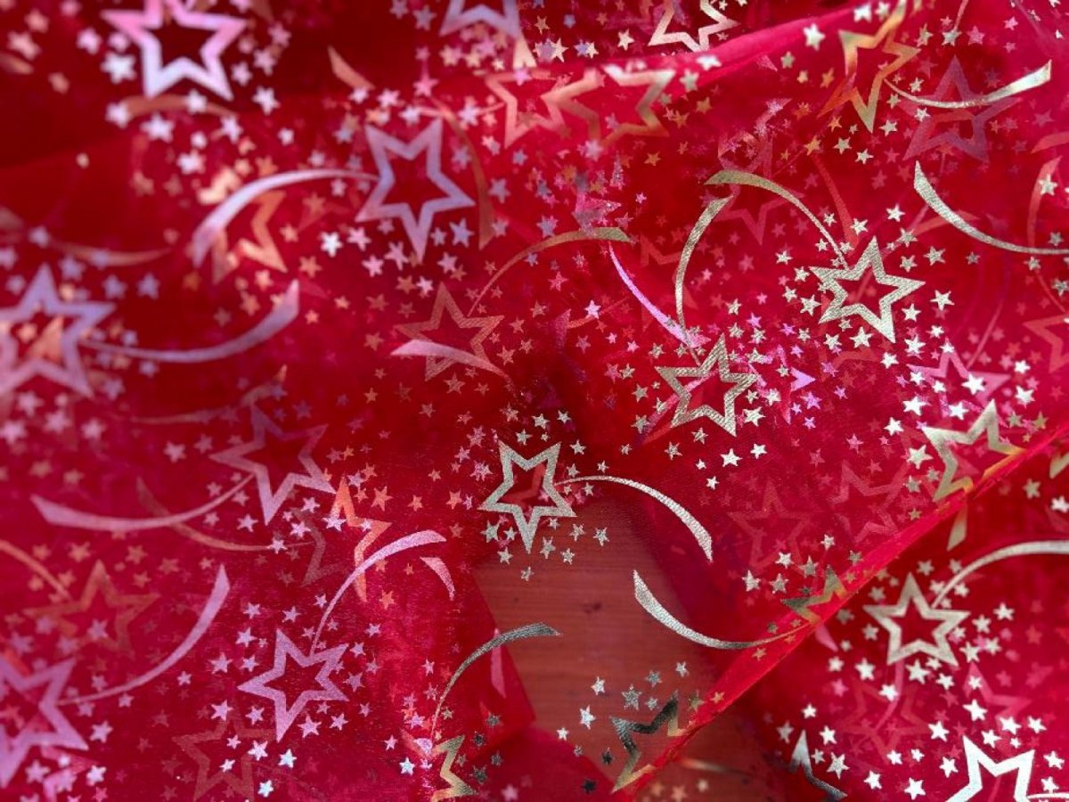 Vánoční organza s potiskem je vhodná k dekoračním účelům. Organza je oboustranná z jedné strany zlatá a z druhé strany stříbrná.