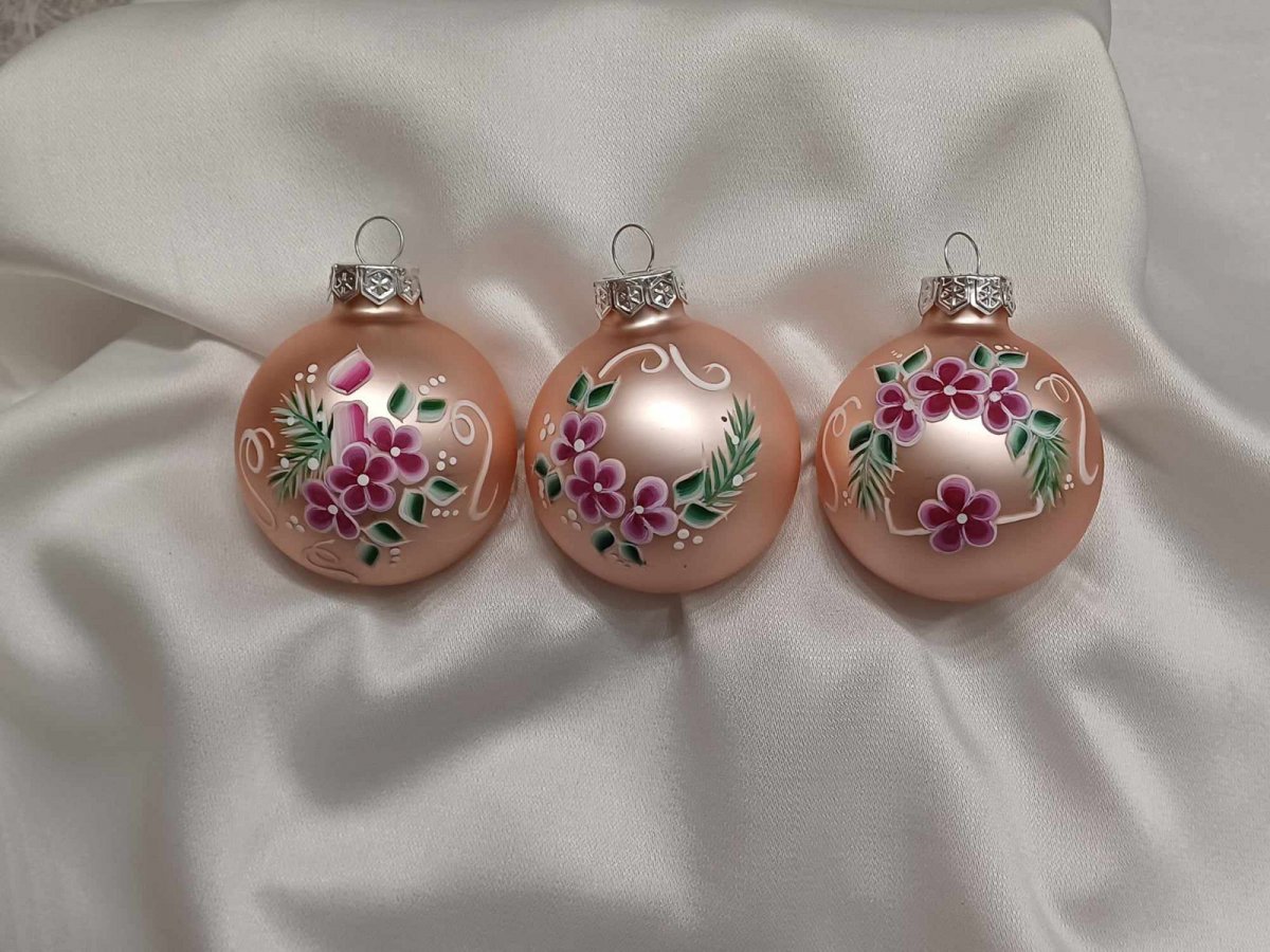 Skleněné vánoční kouličky, baňky průměr 6 cm, ručně malované technikou ONE STROKE + třpytky.