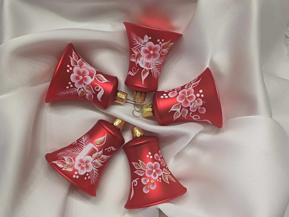 Skleněné vánoční zvonečky, ručně malované technikou ONE STROKE + třpytky.