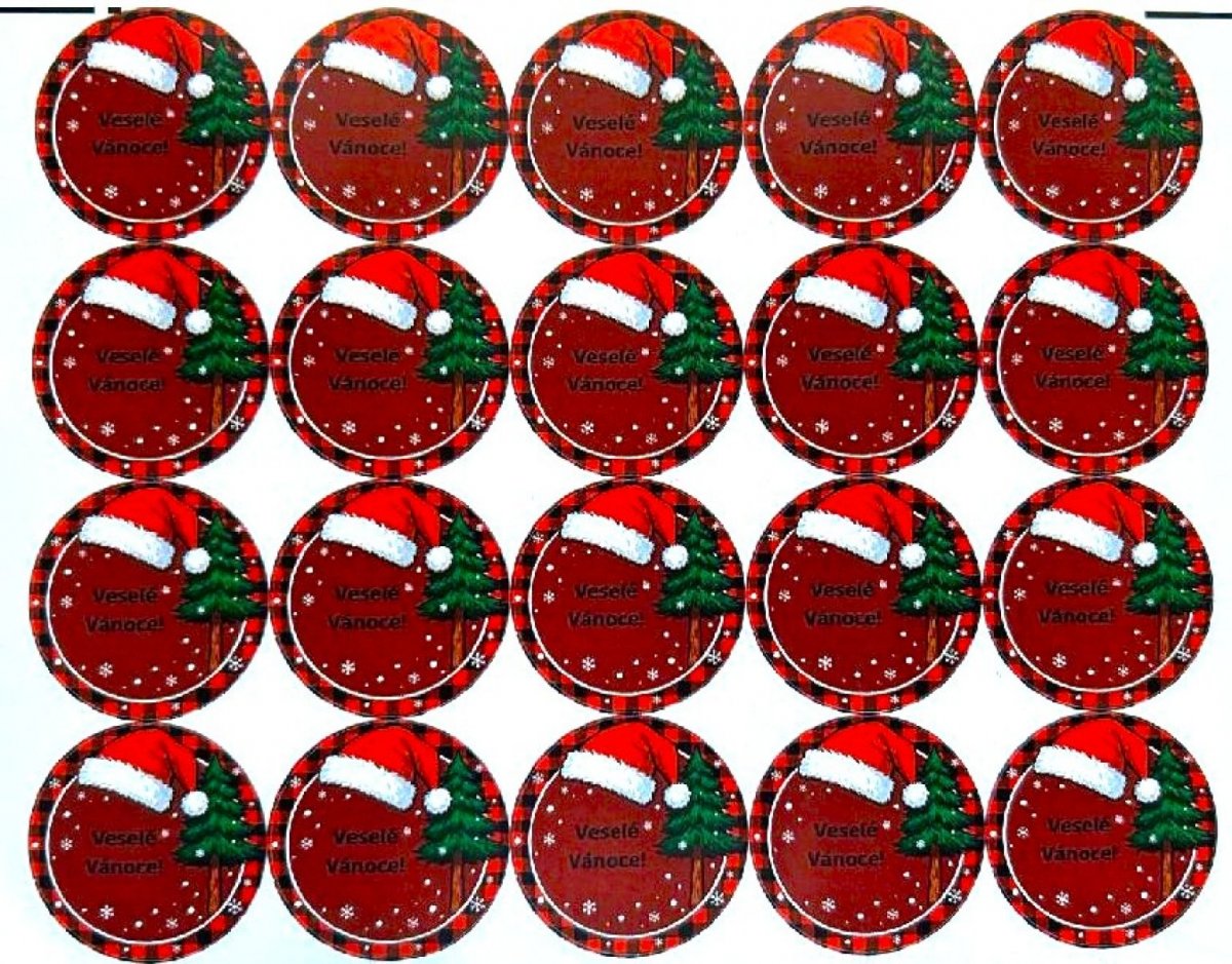 Kulaté vánoční papírové samolepky využijete na zdobení přáníček, dárků, pozvánek, krabiček apod.