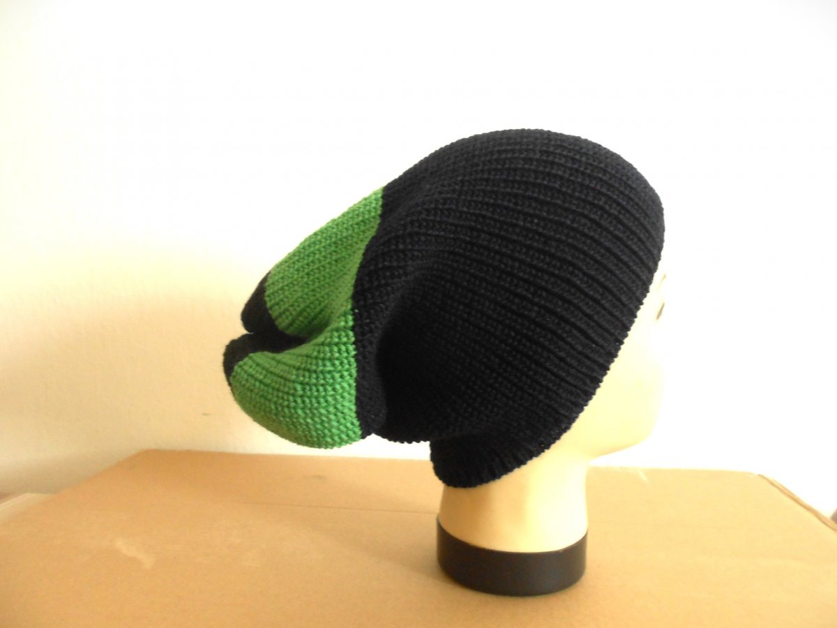Strojově pletená, pružná, delší čepice, tmavě modrá, zelená, černá, 50% merino, 40%vlna, 10%akryl, výška 26 cm, obvod hlavy 56-65cm.