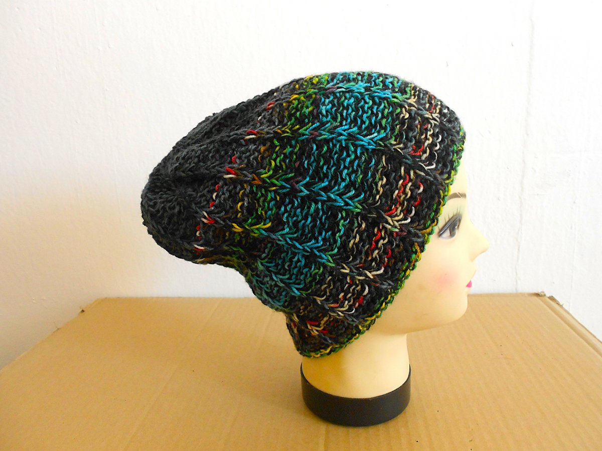 Ručně pletená čepice. Velikost uni: obvod hlavy 55- 62cm, výška 23cm, barevná, 30% merino, 70% akryl. Doporučuji ruční praní. Sušit volně položené.