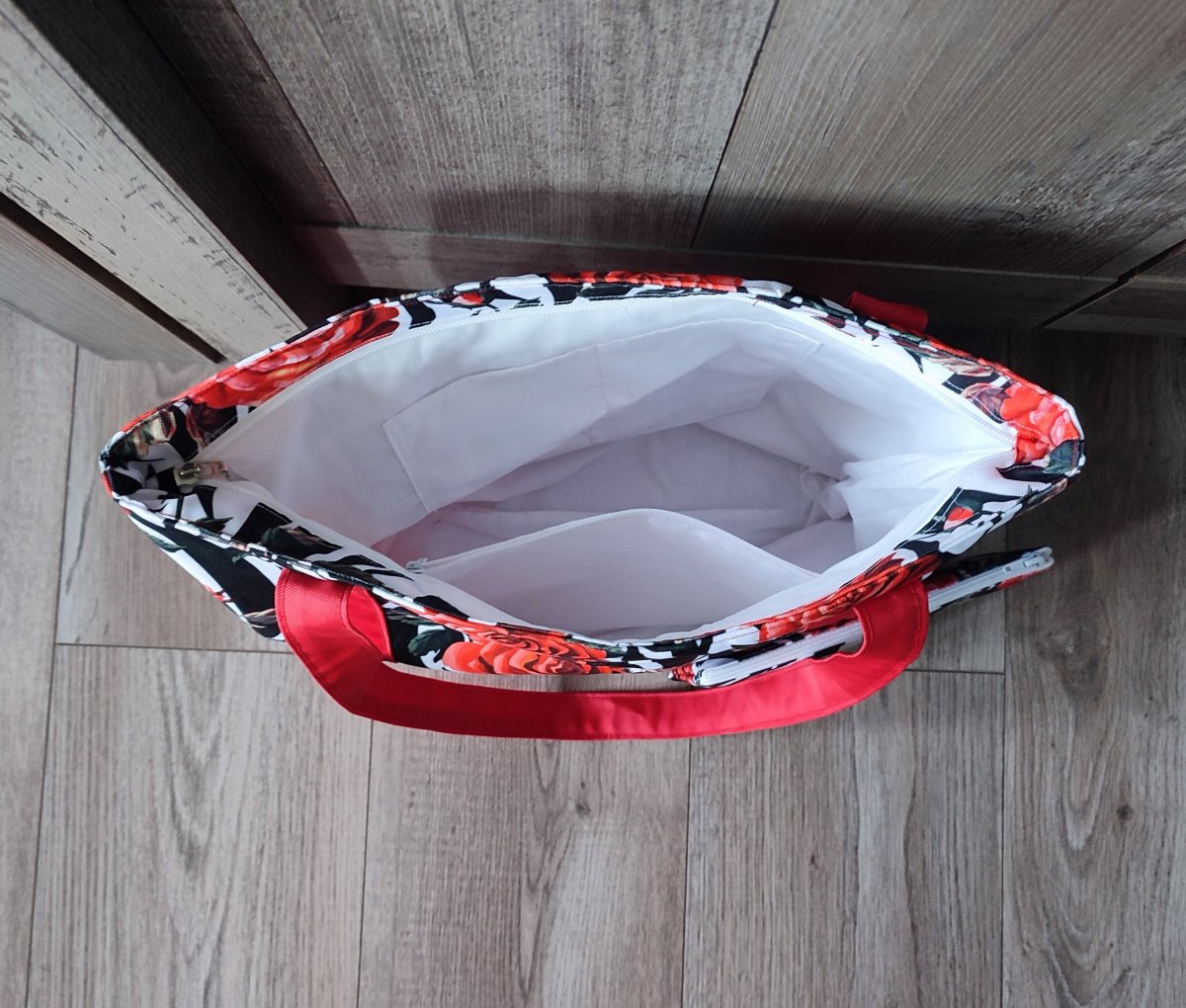 Krásná kabela přes rameno, nebo do ruky, ušitá z kočárkoviny. Je velmi pevná a praktická, nepromokavá s velkým úložným prostorem.