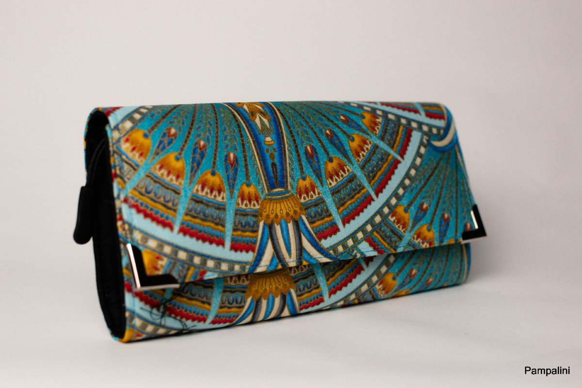 Velká peněženka ušitá z krásné zahraniční designové látky. Pevně vyztužená a opatřená kovovými rohy.