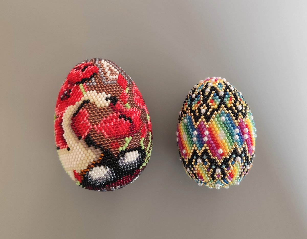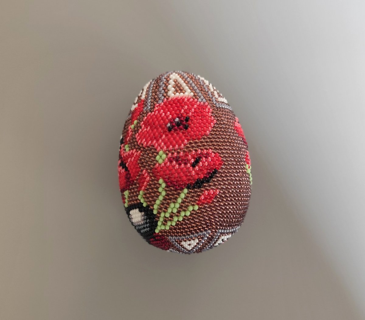 Velikonoční vajíčko je háčkováno z rokajlových korálků.