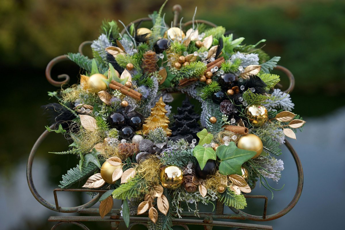 Vánoční věnec o průměru 38cm v kombinaci černé a zlaté barvy. Materiál je trvanlivý, chvojí ve 3D kvalitě.