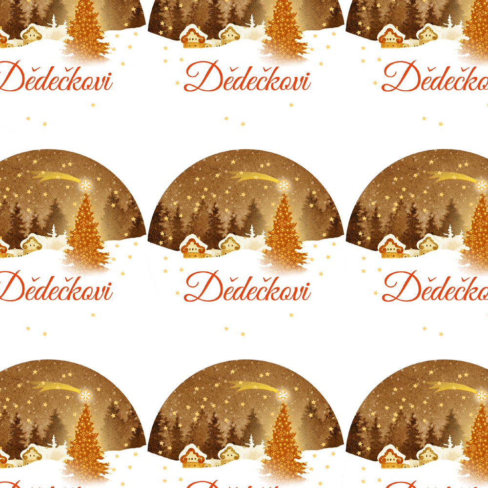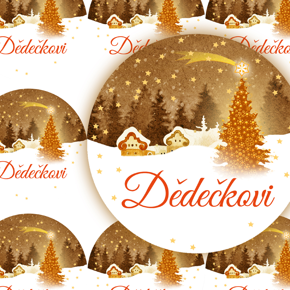 Autorské jmenovky - samolepky s motivy zimní vesničky.