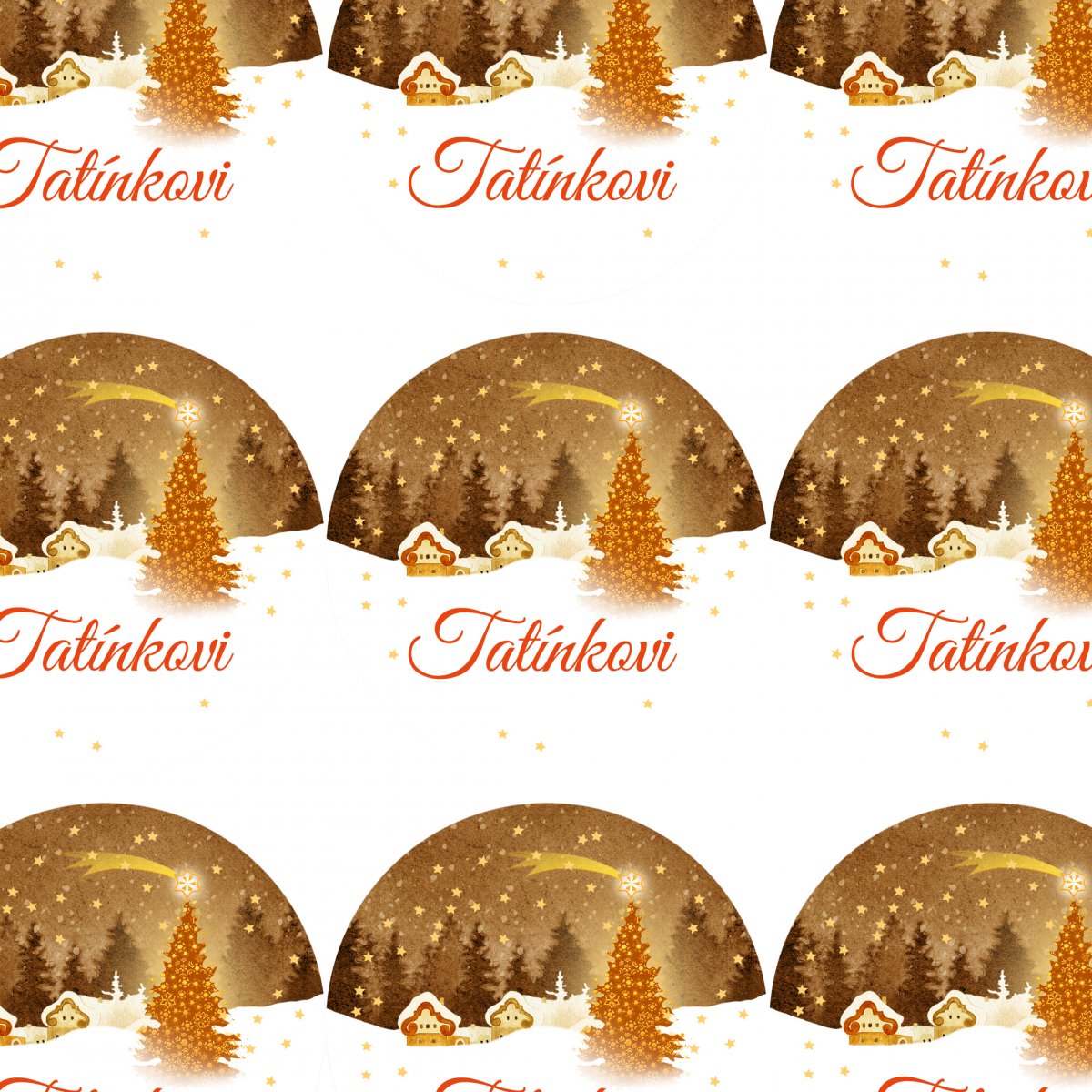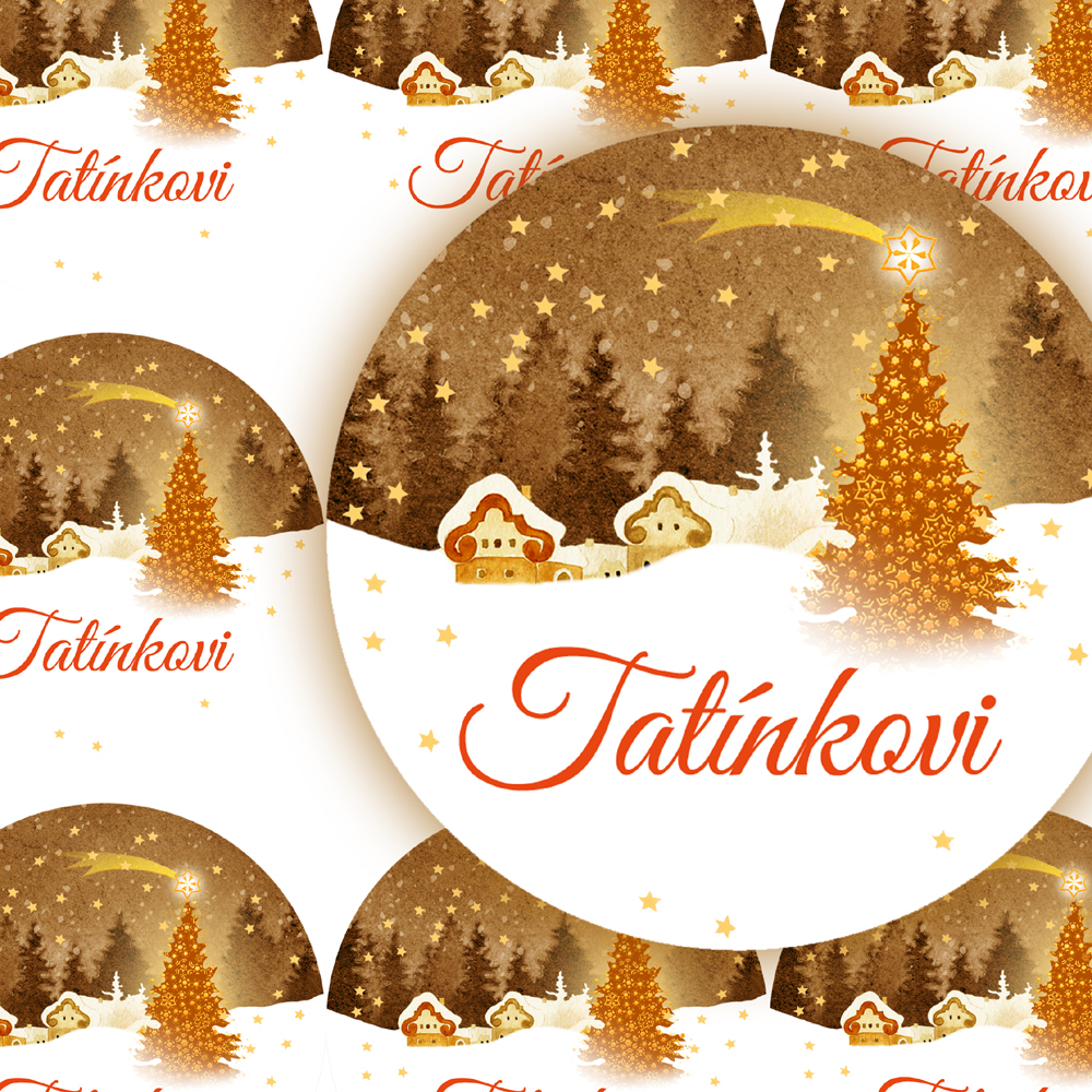 Autorské jmenovky - samolepky s motivy zimní vesničky.