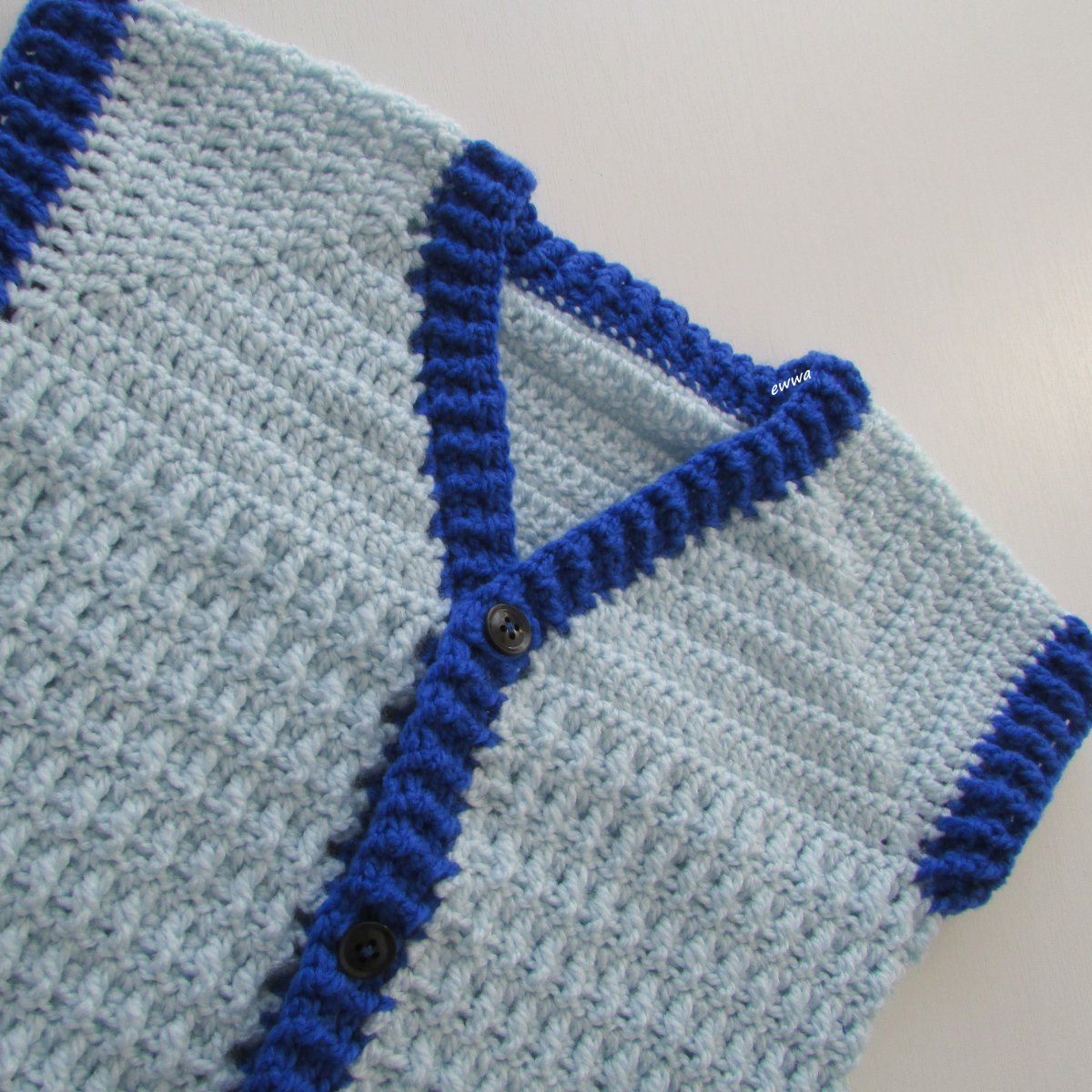 Háčkovaný svetřík, vesta na zapínání, výstřih do "V",