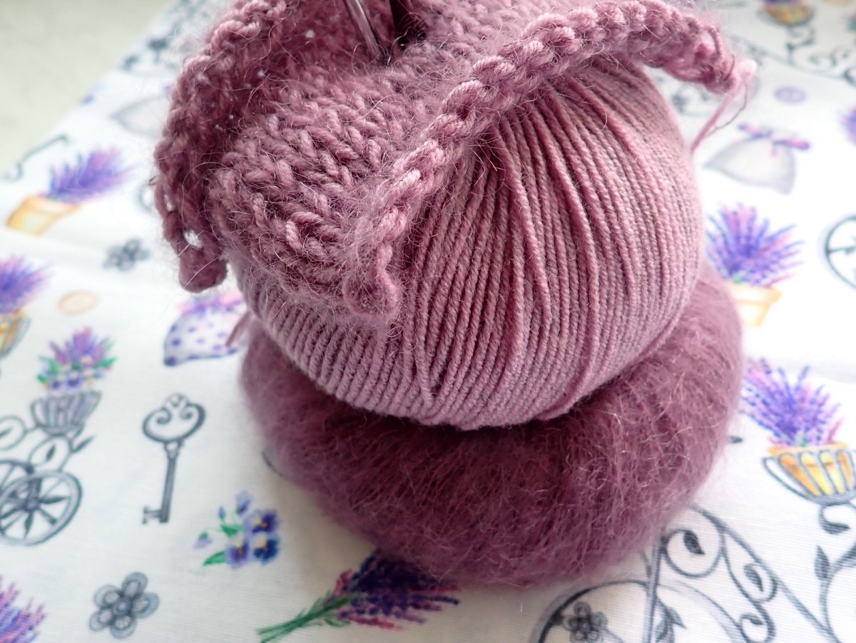 Je upletená na kruhových jehlicích beze švů z dvou druhů příze, jedna je 100 % merino vlna a druhá má složení 75% dětský mohér a 25% morušové hedvábí. Mohér je textilní vlákno ze srsti angorské kozy a hedvábí je přírodní bílkovinné vlákno vyráběné z larev bource morušového.