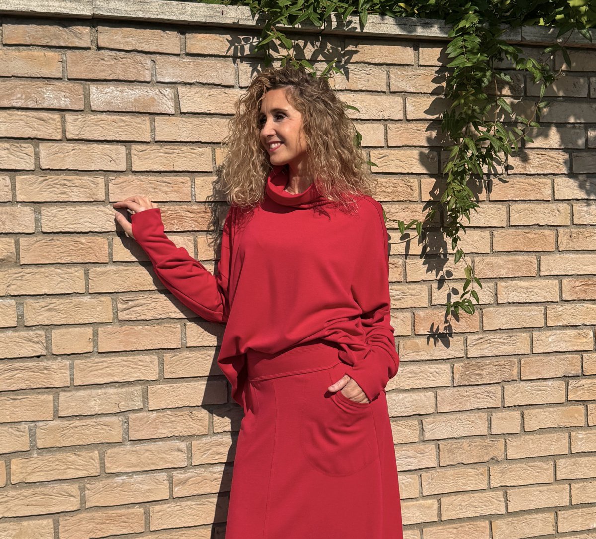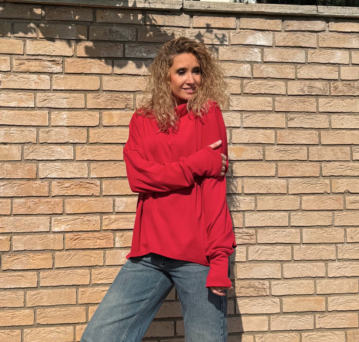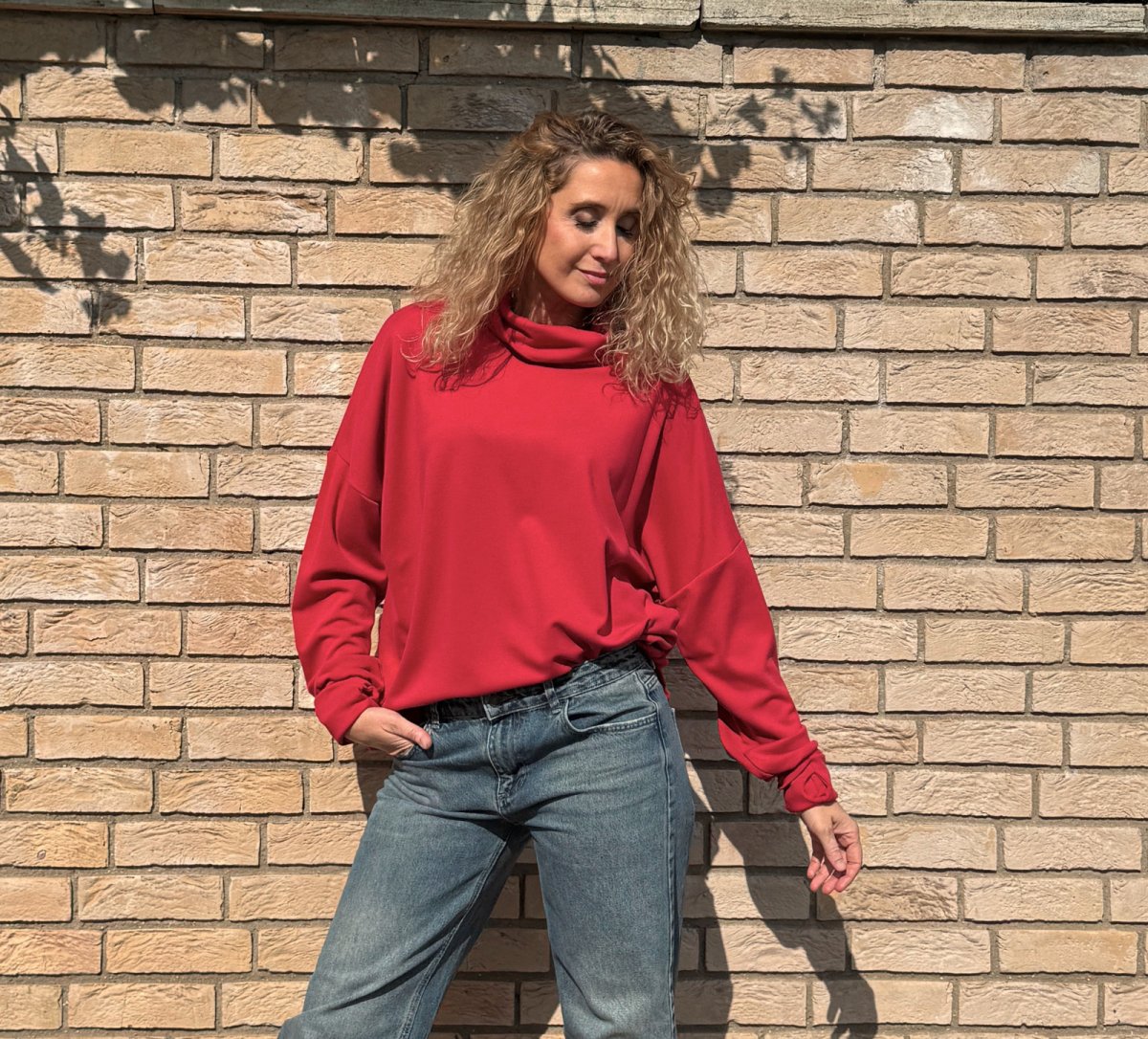 Volný rolák je ušitý ze směsového úpletu (68%vis/28%pes/4%ela).