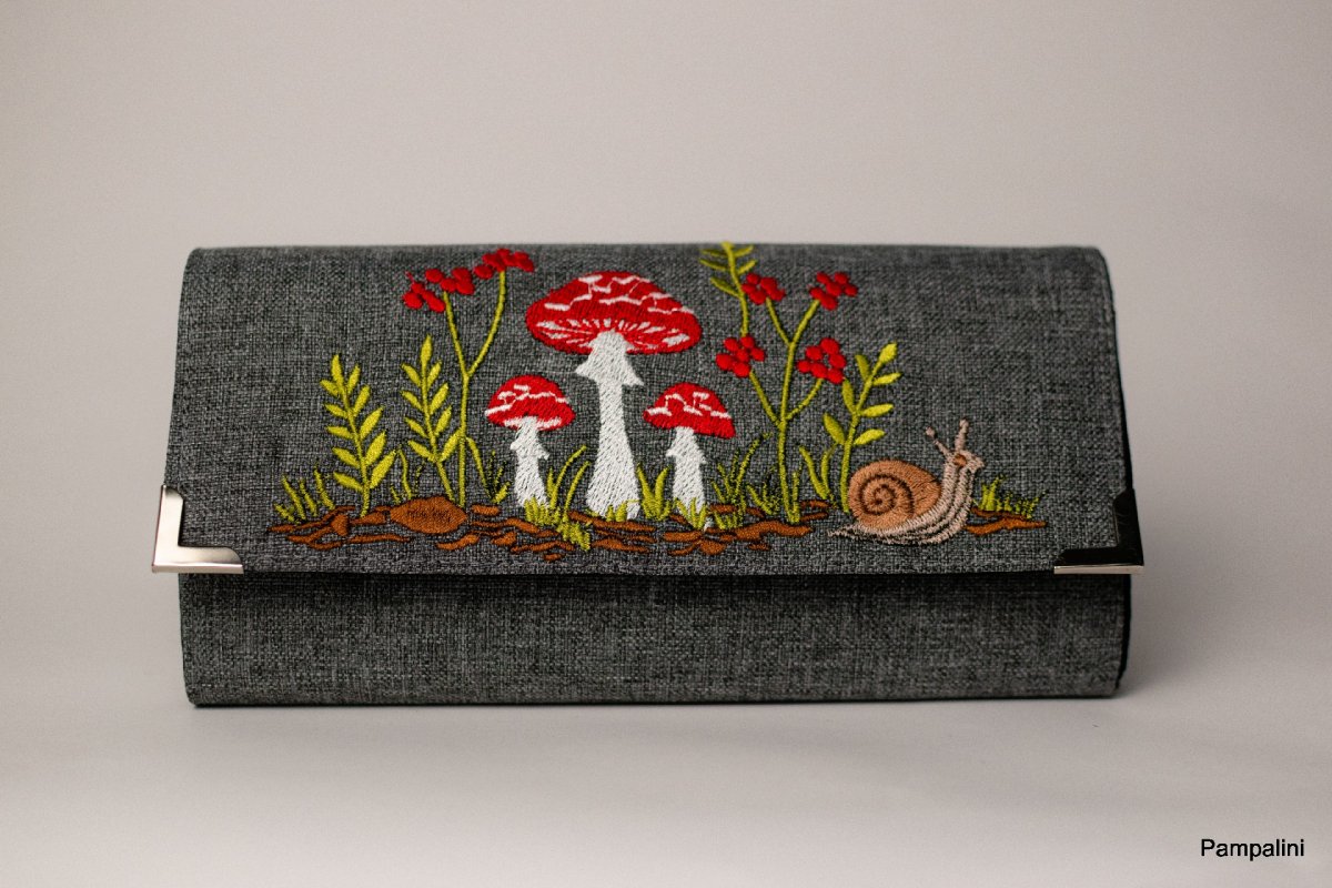 Velká peněženka ušitá z odolné kočárkoviny se strojní výšivkou.  Pevně vyztužená a opatřená kovovými rohy.