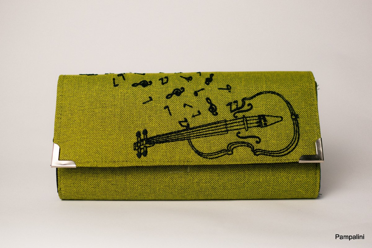 Velká peněženka ušitá z odolné kočárkoviny se strojní výšivkou. Pevně vyztužená a opatřená kovovými rohy.