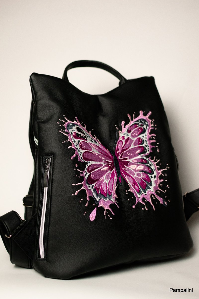 Ušitý z kvalitní koženky opatřený strojní výšivkou.
