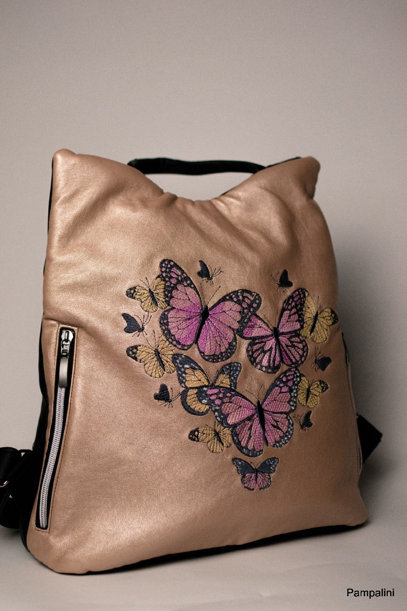 Ušitý z kvalitní koženky opatřený strojní výšivkou.