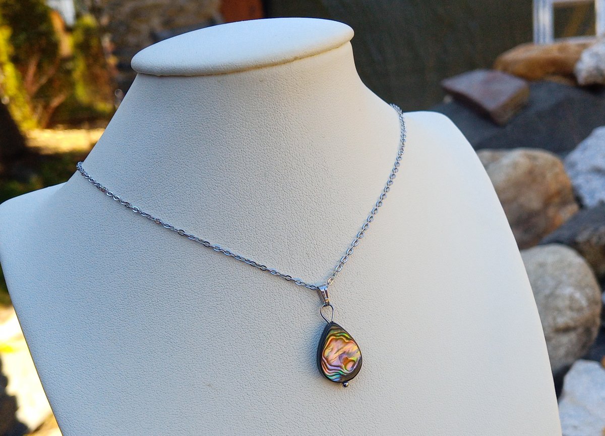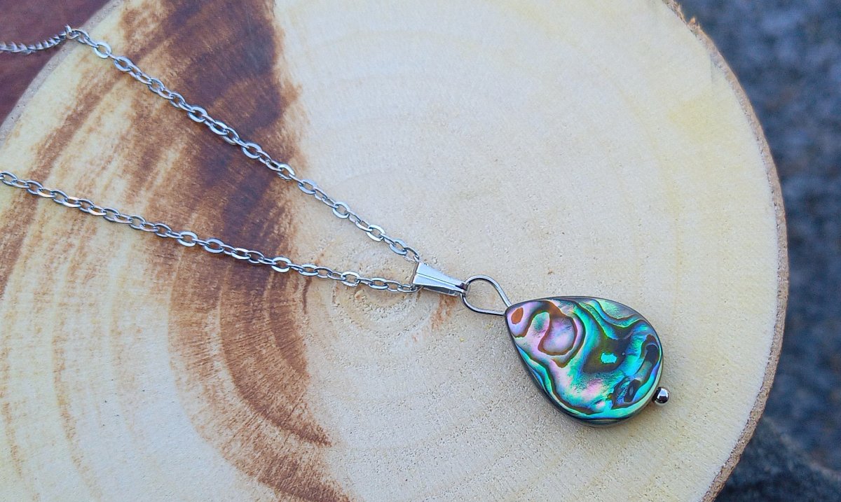 Ozdobte svůj dekolt fascinující hrou barev, kterou dokáže vytvořit jen sama příroda. Tento minimalistický, a přesto nepřehlédnutelný náhrdelník nese dominantní kapku pravé perleti z mušle Abalone, která vyniká svými magickými duhovými odlesky, protkanými smaragdovou, růžovou, tyrkysovou a modrou barvou.