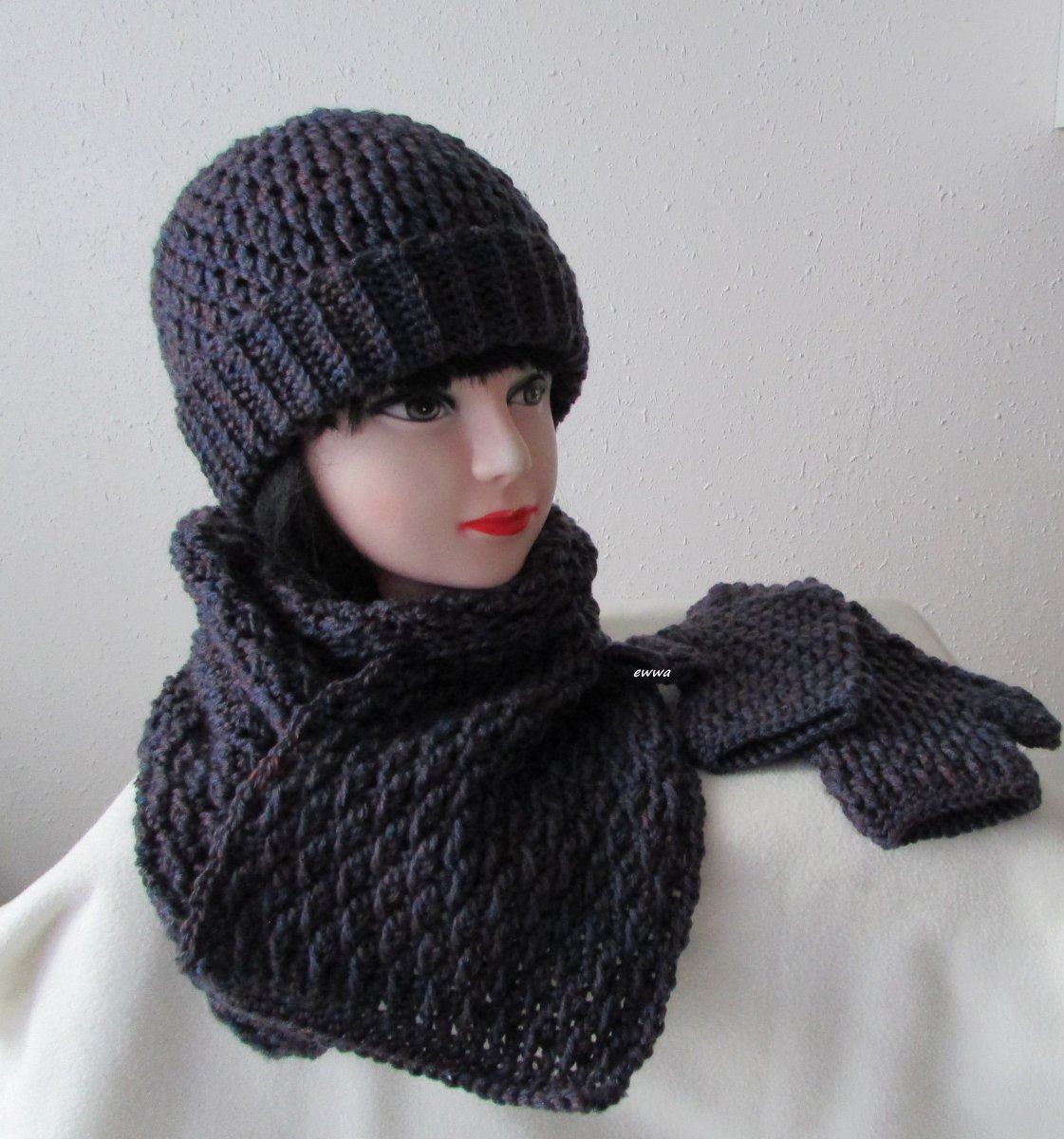 Zimní teplá souprava - čepice + šála + bezprsté rukavice,