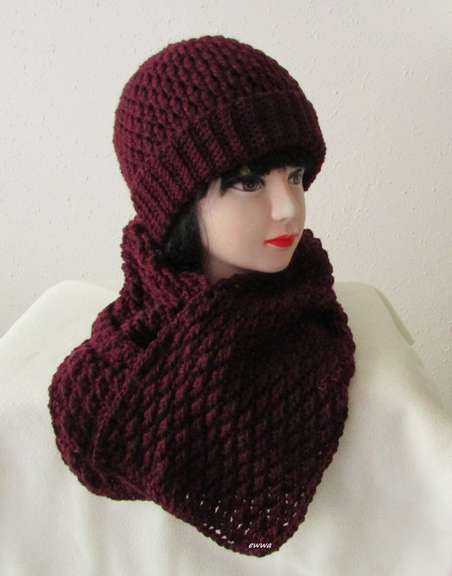 Zimní teplá souprava - čepice + dlouhá šála,
