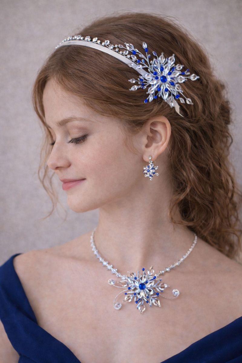 Set dokonale doplní společenské i večerní šaty, je ideální volbou pro zimní plesy, vánoční večírky, svatby v zimním období nebo jako výjimečný dárek. Díky jemnému třpytu působí luxusně, ale zároveň zůstává něžný a ženský.