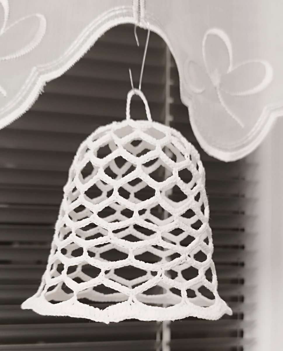 Háčkovaný zvonek z bílé příze, střední velikosti