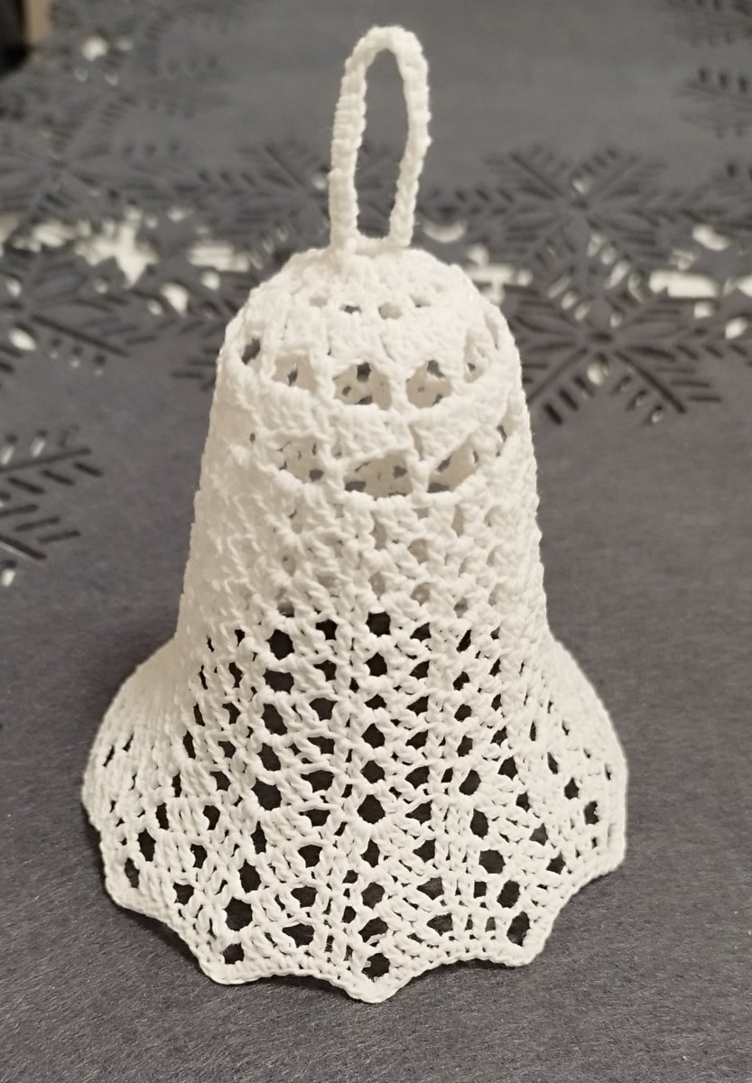 Háčkovaný zvonek z bílé příze, střední velikosti
