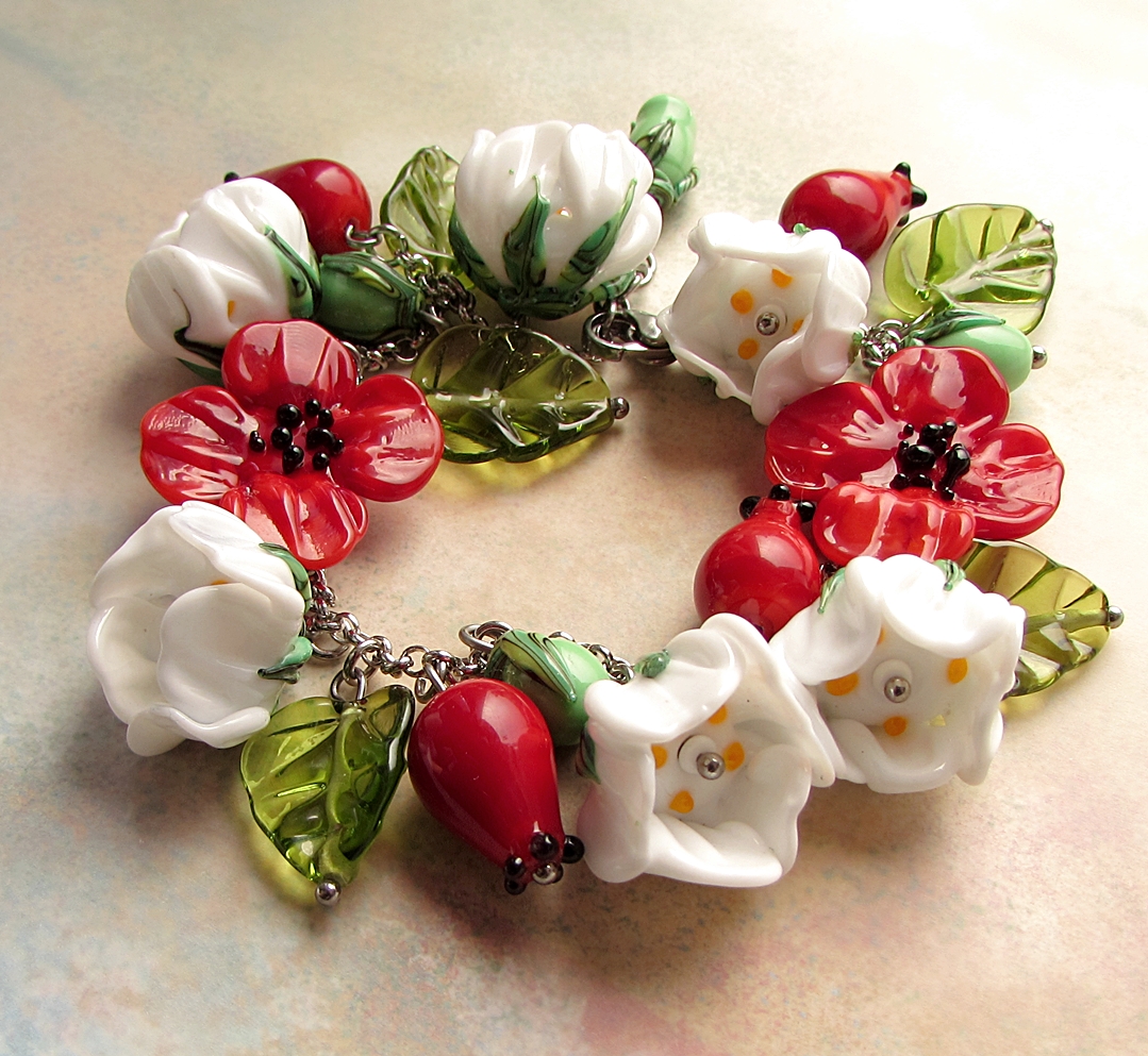 "Luční.."náramek, vinuté skleněné květy@chirurgická ocel