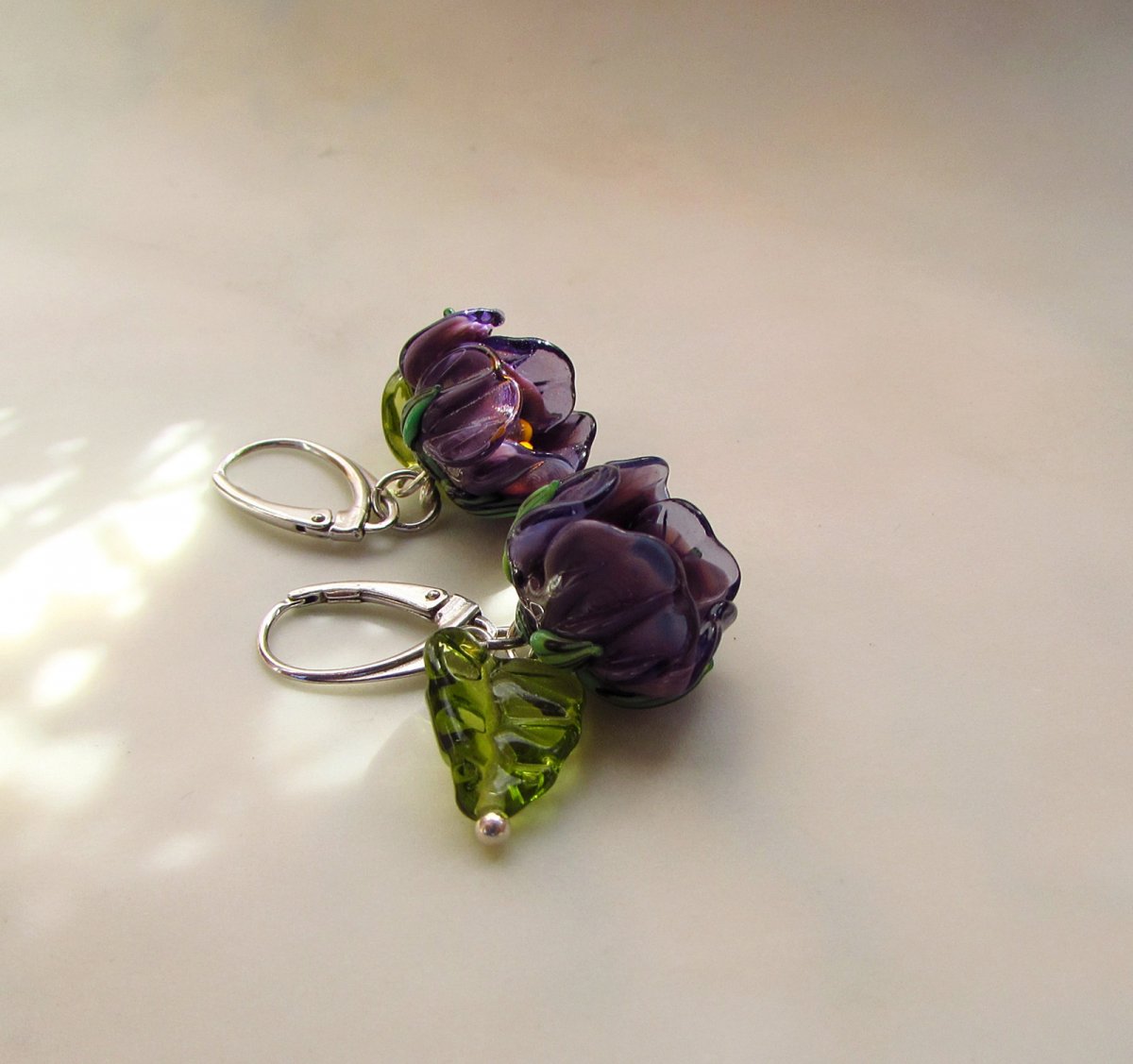 "Bezinkiové podzimky...."náušnice, vinuté sklo a kov
