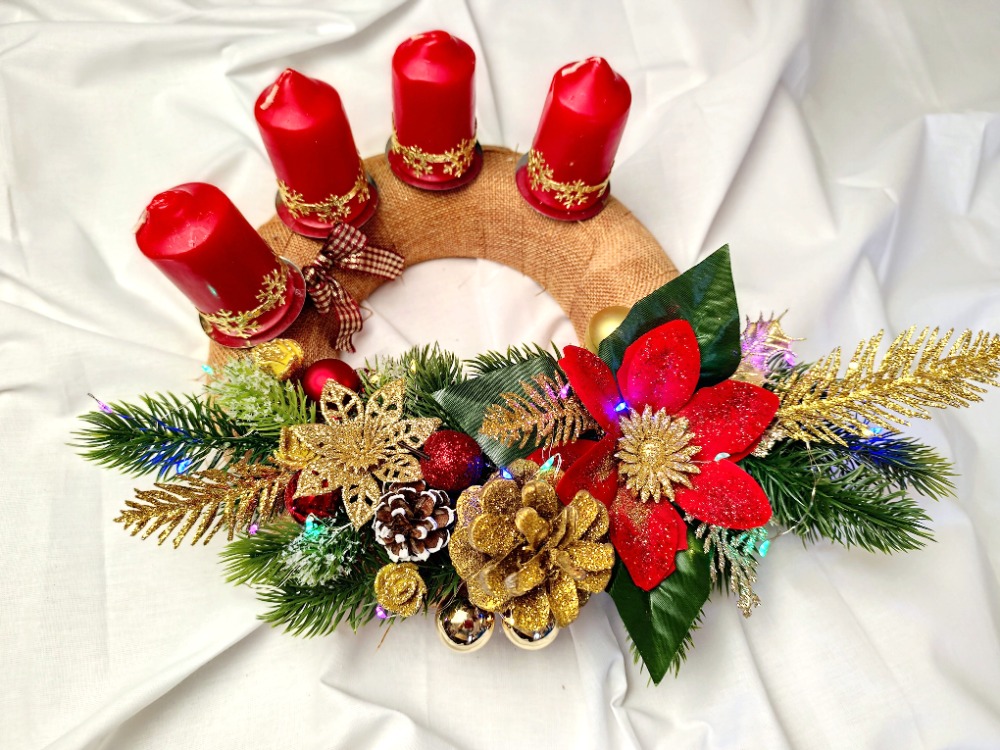 Průměr věnce- 25 cm ,průměr přízdoby - 38 cm.