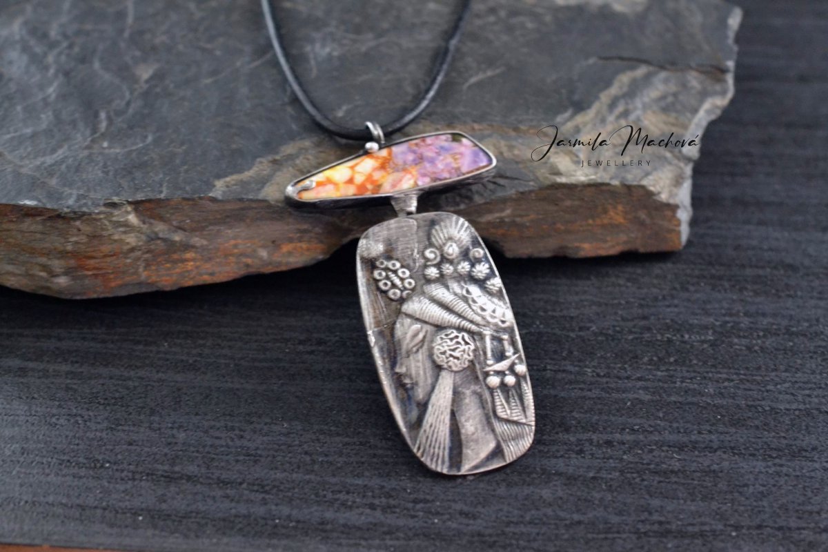 Trochu jiný náhrdelník s variscitem a obrázkem Afrodity (měděný lisovaný plátek)