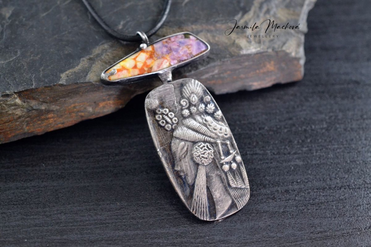 Trochu jiný náhrdelník s variscitem a obrázkem Afrodity (měděný lisovaný plátek)