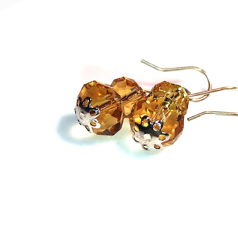 Elegantní společenské náušnice s medovými broušenými rondelkami