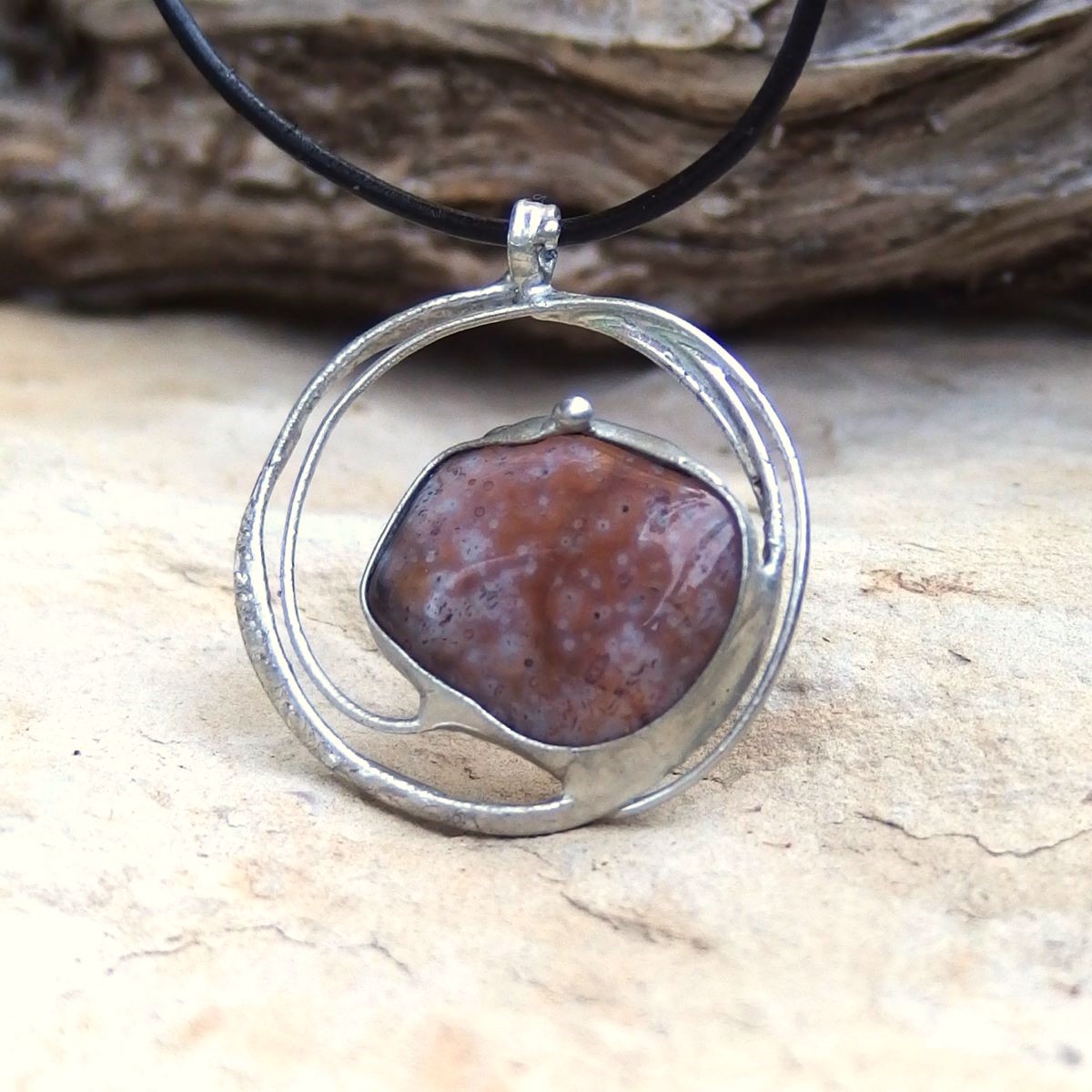 Cínovaný náhrdelník spuntíkatým achátem.