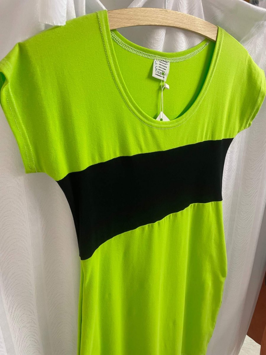 Letní šaty – Svítivá žlutozelená s černou