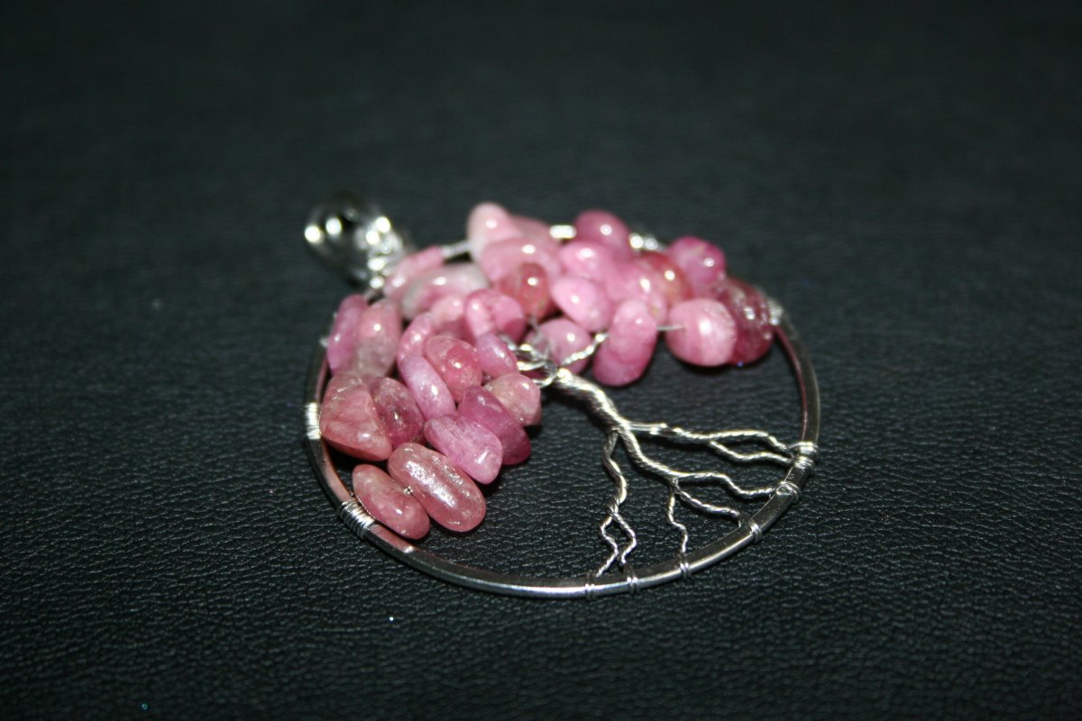 Přívěšek je vyroben z chirurgické oceli 316L, ozdobený krásnými kamínky růžového Turmalínu.
