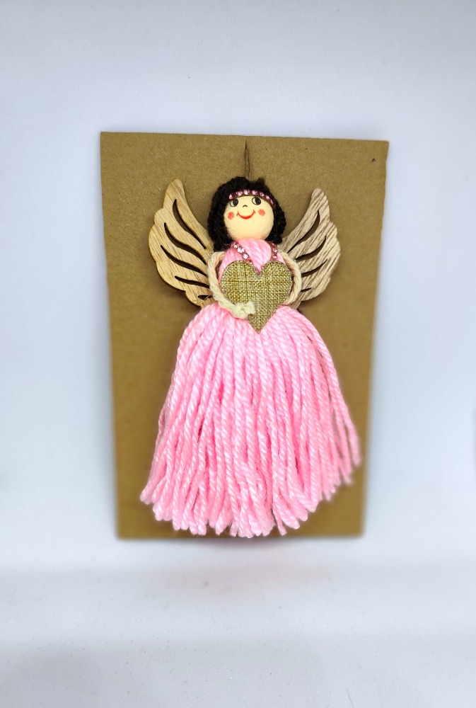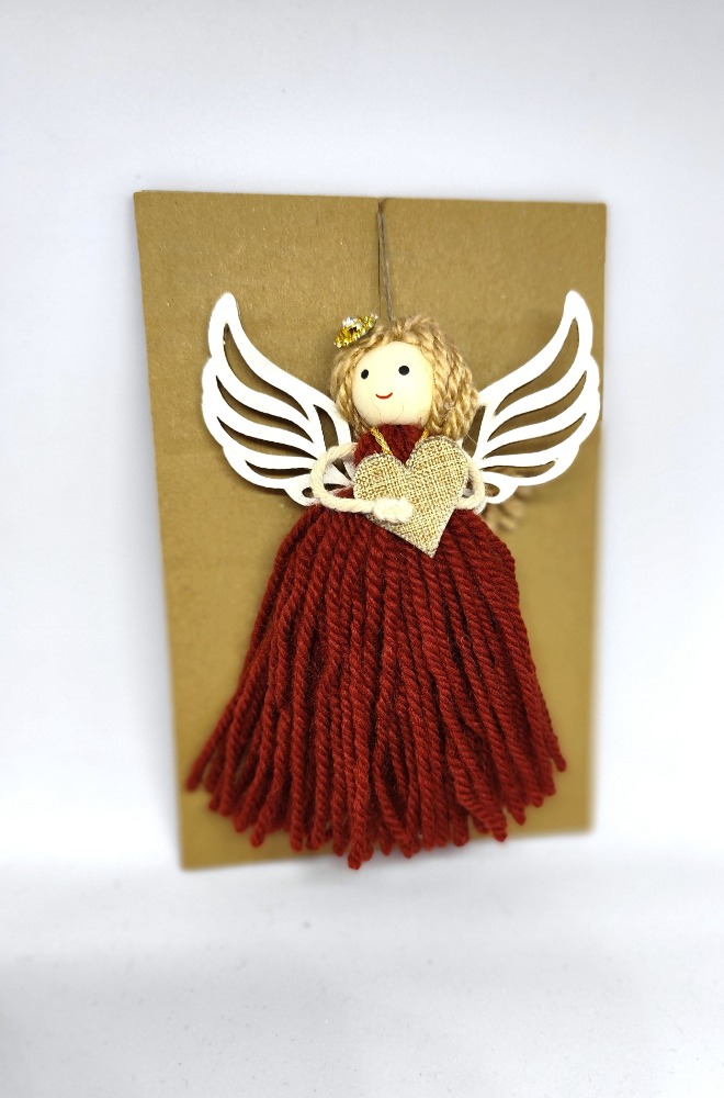 Krásná ručně vázaná macramé andělka s možností zavěšení. Elegantní design doplňují křídla a jemné detaily.