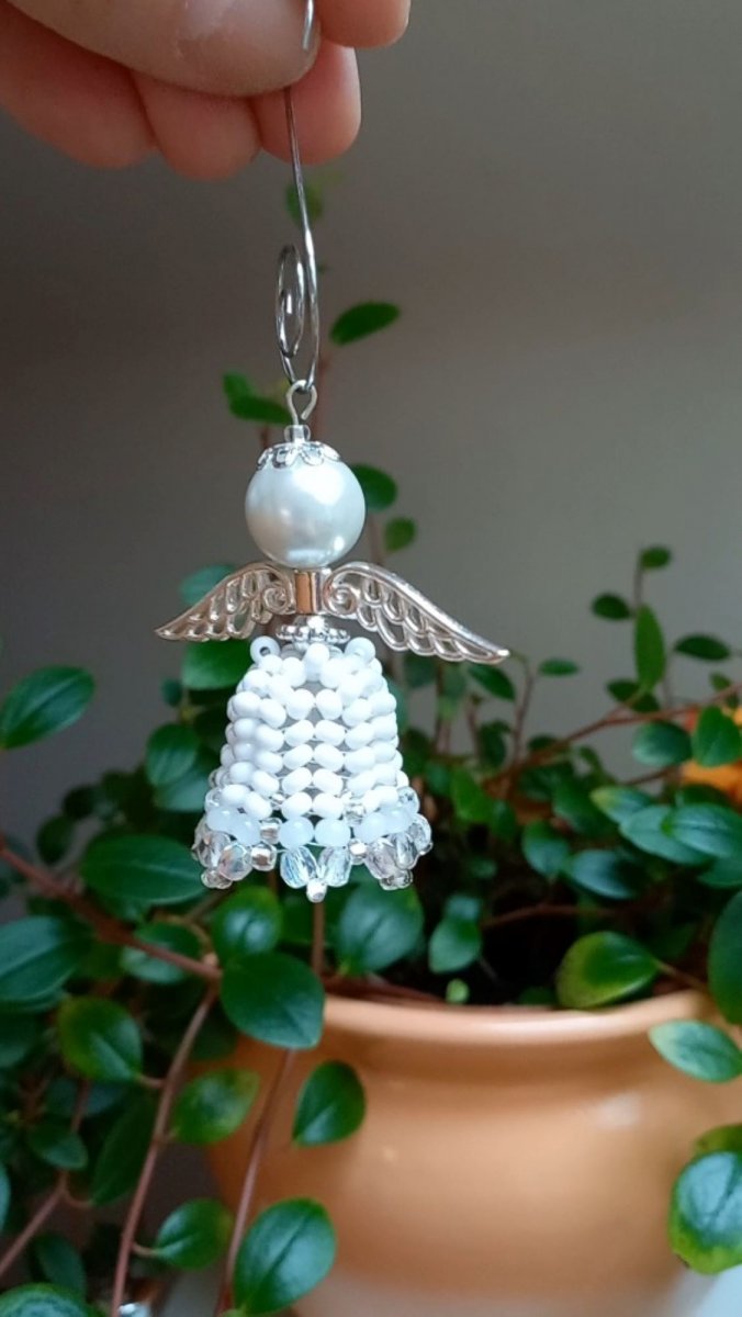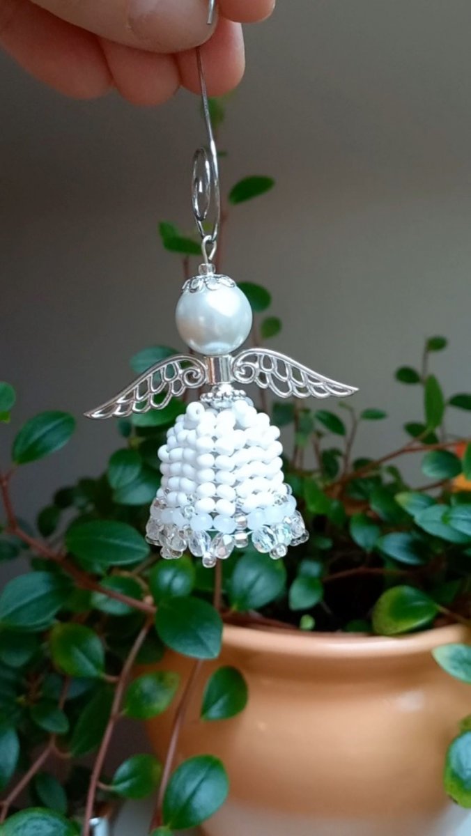Ručně šitý anděl z korálků – vánoční dekorace s duší.