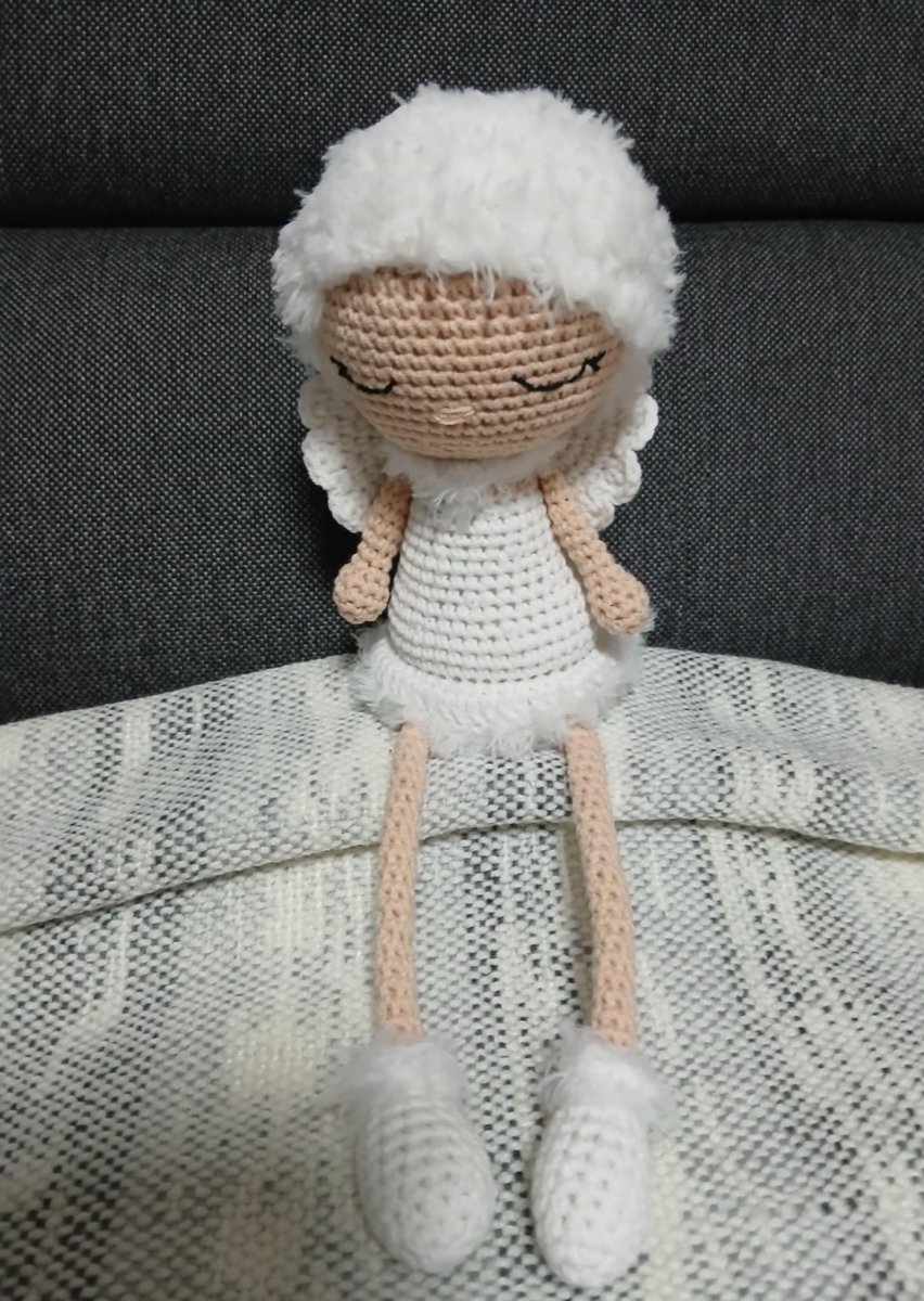 Háčkováno ze směsové příze bavna/akryl a vlásky z chlupaté příze polyamid), naplněné dutým vláknem.