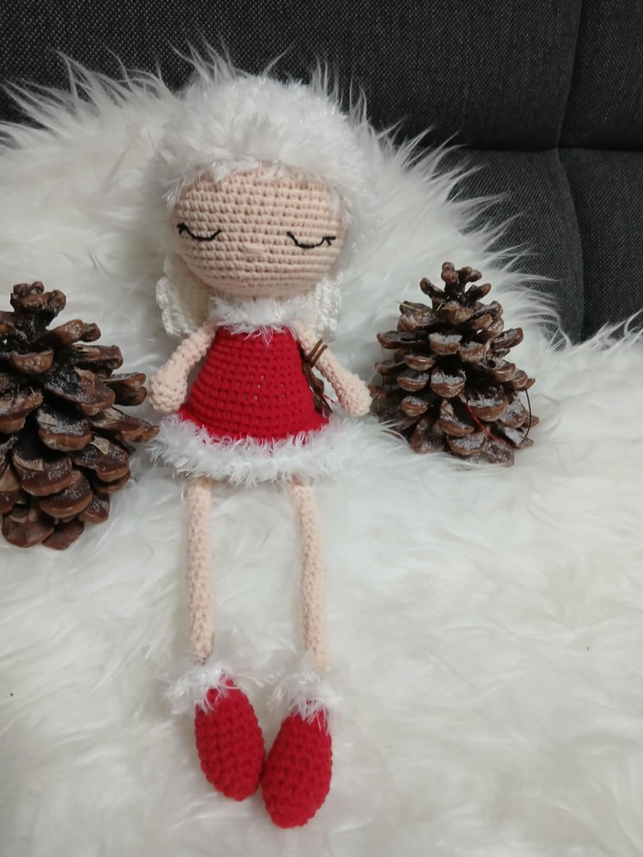 Háčkováno ze směsové příze bavna/akryl a vlásky z chlupaté příze polyamid), naplněné dutým vláknem.