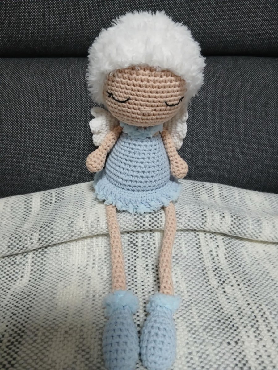 Háčkováno ze směsové příze bavna/akryl a vlásky z chlupaté příze polyamid), naplněné dutým vláknem.