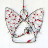 Drátovaná andělka ozdobená skleněnými červenými korálky, voskovými zelenými perličkami a beruškou.