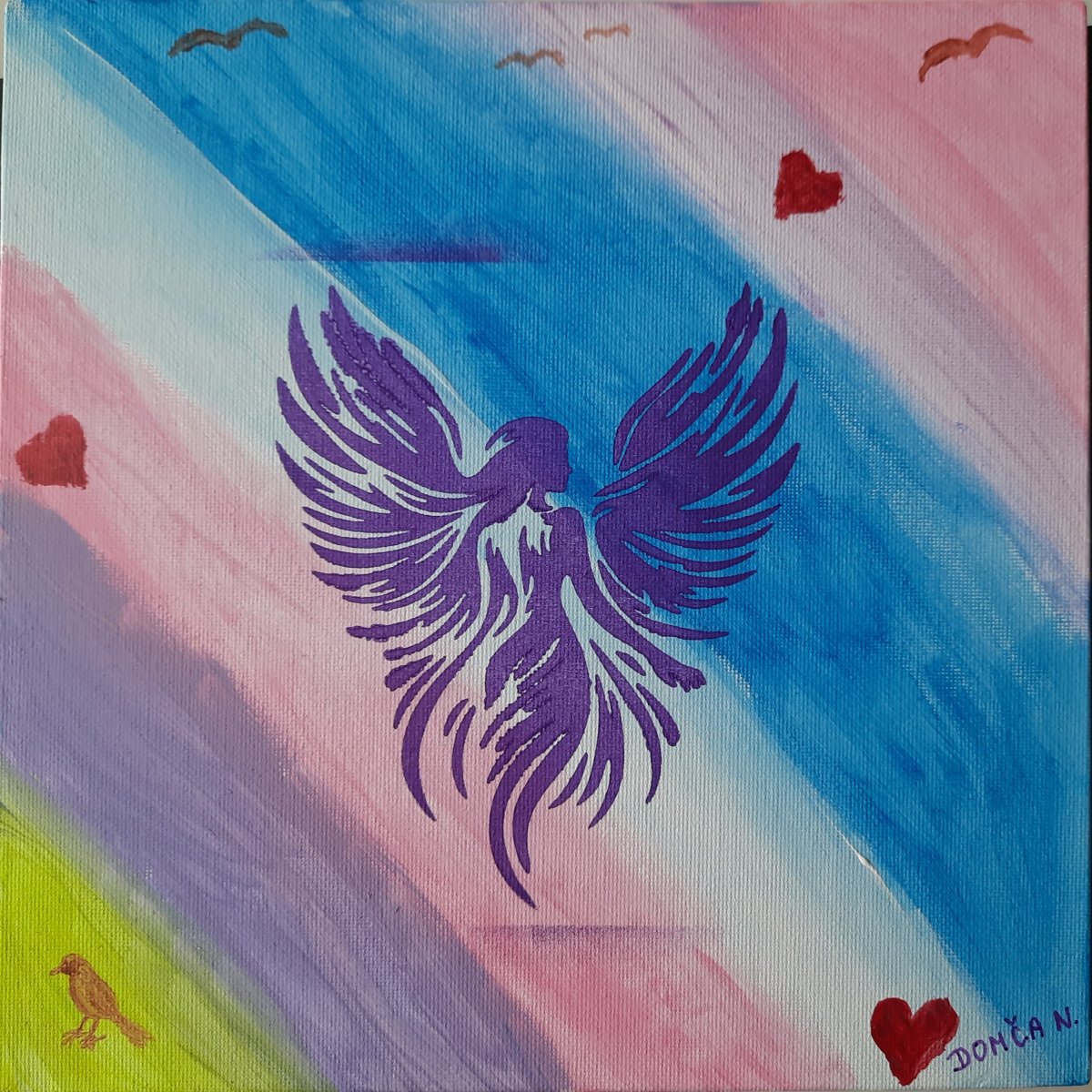 Malba akrylem na čtvercové plátno o velikosti cca 25 cm x 25 cm.