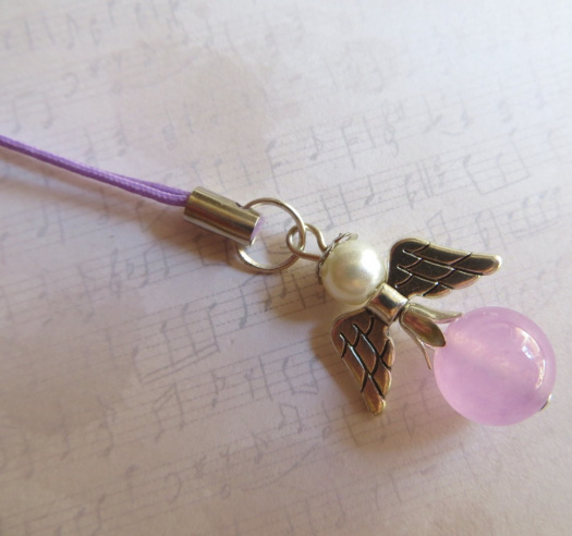Andílek pro štěstí vyrobený z kuličky ametystu, kovových komponentů, voskované perle, se závěsným poutkem. Velikost andílka bez očka je 23 mm.