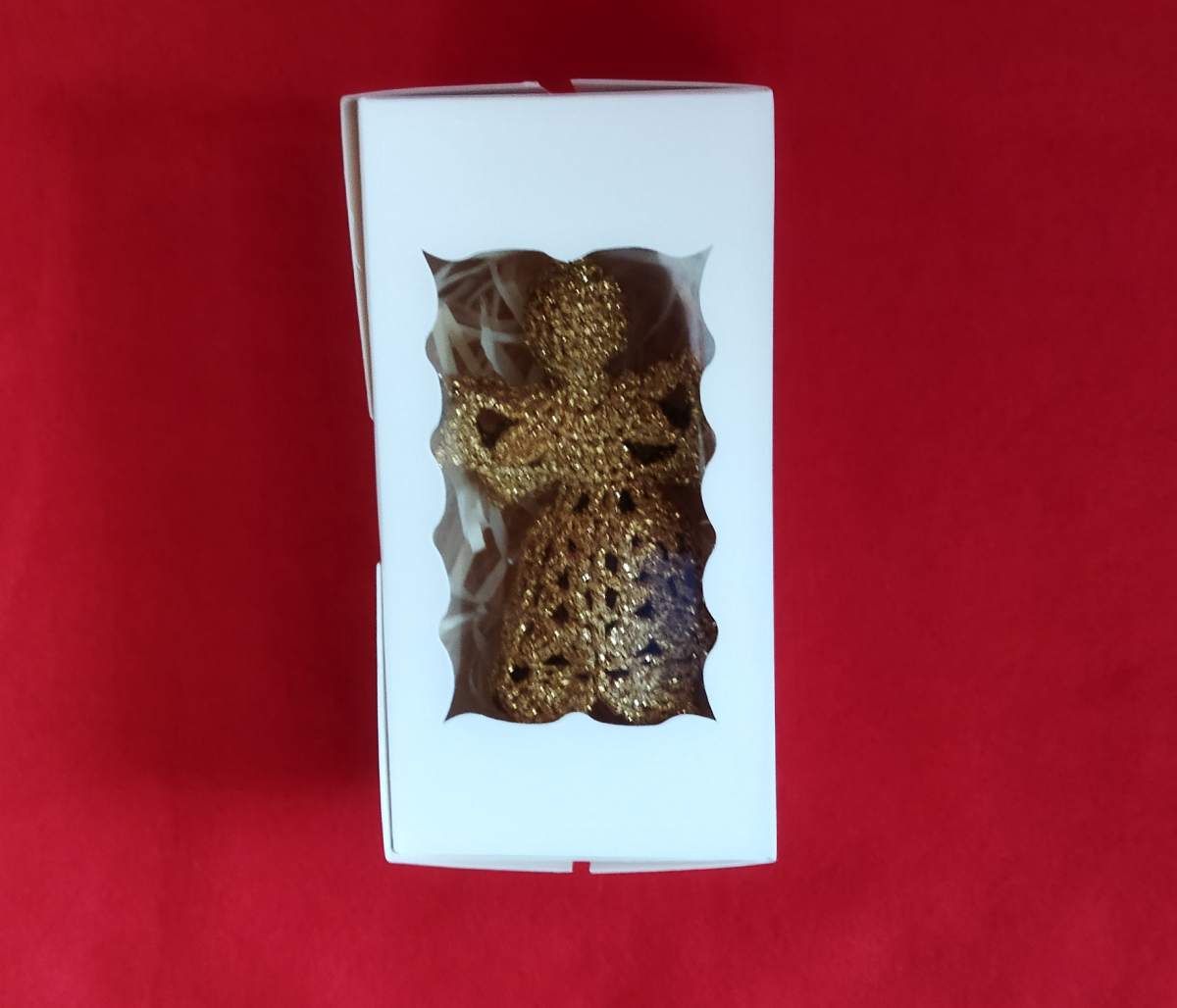 Andílek je uháčkovaný z vysoce kvalitní metalizované zlaté efektní příze německé výroby. Je pečlivě naškrobený, aby krásně držel tvar. Jeho výška je cca 9cm. Skvěle se hodí jako ozdoba na vánoční stromeček, věnec nebo jako přízdoba k dárkům. Nebo ho můžeme postavit volně na vánoční stůl nebo okno. Fantazii se meze nekladou.